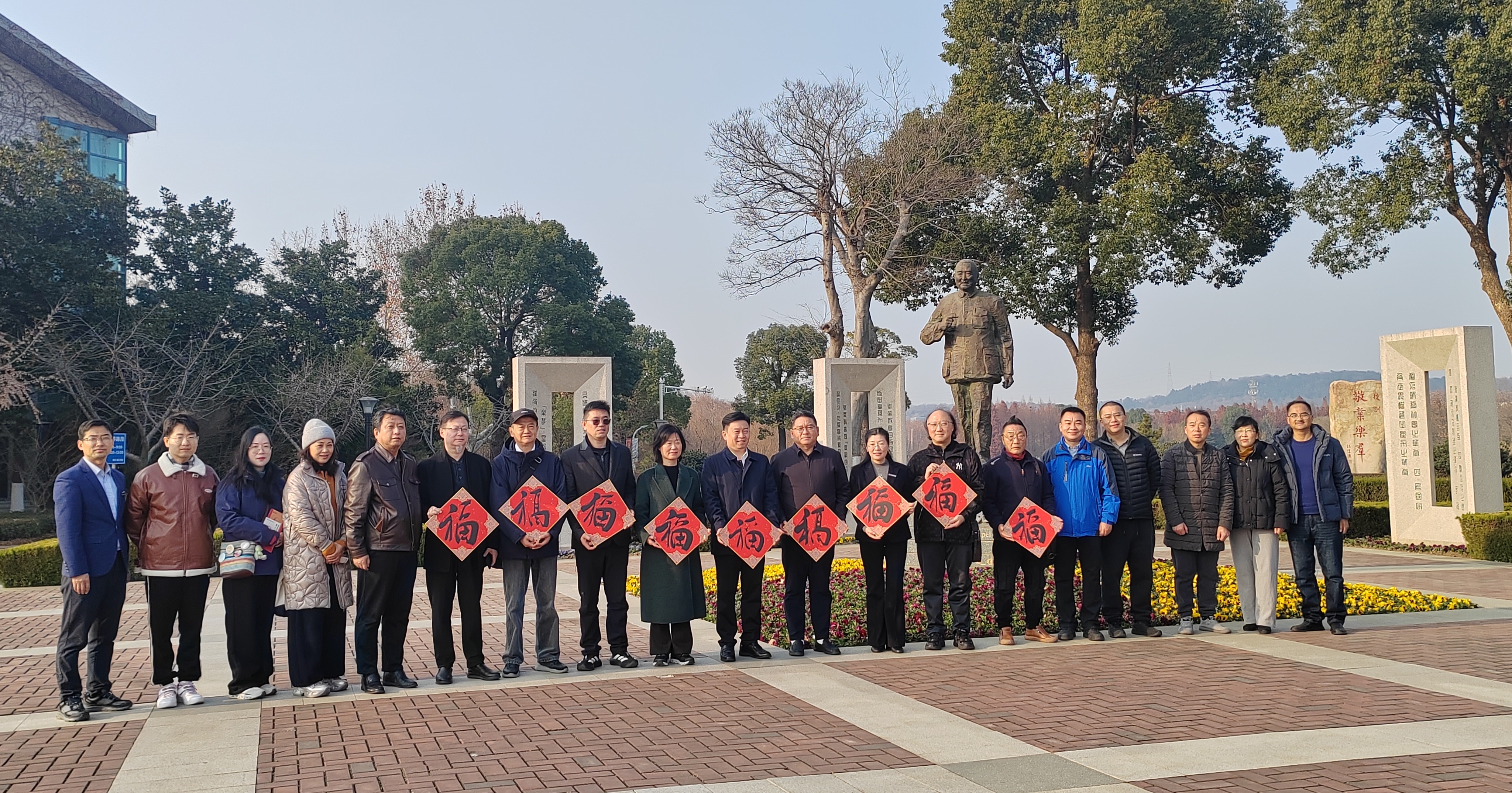 12月30日下午,民盟江蘇省委會直屬機關(guān)第一支部(以下簡稱省直機關(guān)一支部)、民盟江蘇省國風(fēng)書畫院(以下簡稱國風(fēng)書畫院)部分書畫家在江蘇省政協(xié)副秘書長、民盟江蘇省委會專職副主委馮泉的帶領(lǐng)下,赴南京工業(yè)職業(yè)技術(shù)大學(xué)(以下簡稱南工)仙林校區(qū),與民盟南工支部聯(lián)合開展“墨香送福 喜迎新春”共建活動。