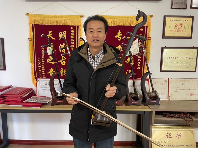 作為2024年度全國非物質文化遺產(chǎn)保護先進個人,趙軍始終致力于非遺的活態(tài)傳承與創(chuàng)新發(fā)展。近年來,他積極探索“文化+互聯(lián)網(wǎng)”模式,通過開設直播工作室,向廣大網(wǎng)友展示二胡制作技藝,讓“指尖非遺”走進千家萬戶。其制作的二胡不僅被多所知名音樂院校選用,更通過市場化運營實現(xiàn)了非遺保護與傳承的良性循環(huán),充分體現(xiàn)了新時代傳統(tǒng)文化保護的新思路、新格局。